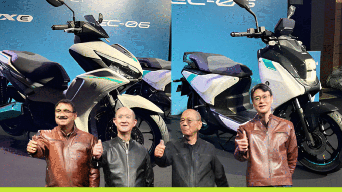 India Yamaha Motor Pvt. Ltd. has entered the electric mobility segment with the launch of its first EVs — the AEROX-E and EC-06. The AEROX-E extends Yamaha’s renowned Maxi-Sports lineage into the zero-emission era. Equipped with a 9.4 kW peak-power motor and 48 Nm of torque, it delivers an energetic and sporty ride. The scooter features dual detachable 3 kWh batteries, reverse mode, and three riding modes — Eco, Standard, and Power, offering a certified range of 106 km on a single charge.